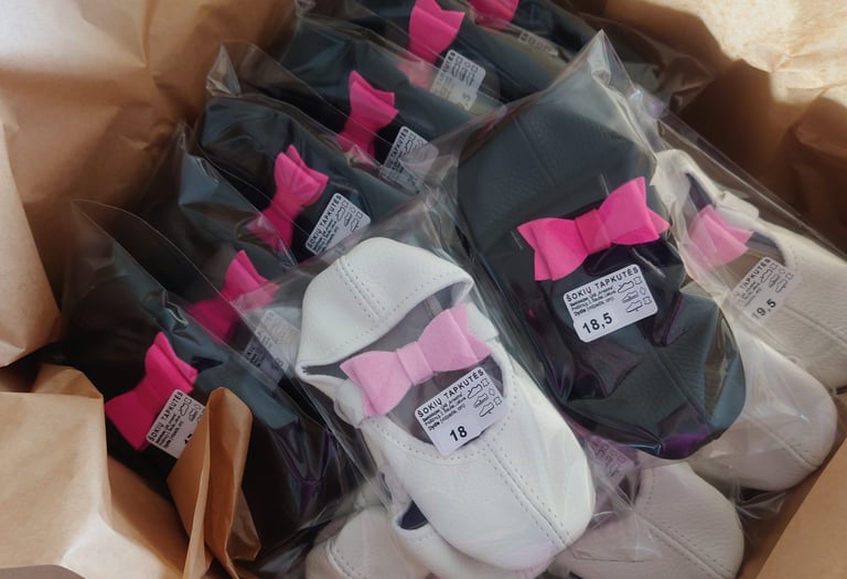 Prekės ženklas Šokių tapkutės siūlo kokybišką natūralios odos rankų darbo Lietuvoje pagamintą šokių avalynę ne tik vaikams, bet ir suaugusiems! Patogi avalynė - puikus pasirinkimas ne tik šokių pamokoms ar būreliams, bet ir smagiam laikui namuose. Gaminame ne tik standartines, tačiau ir vieninteles tokias išskirtines šokių čežutes - plataus spalvų asortimento, dekoruotas dailiais kaspinėliais ar žaismingomis aplikacijomis.